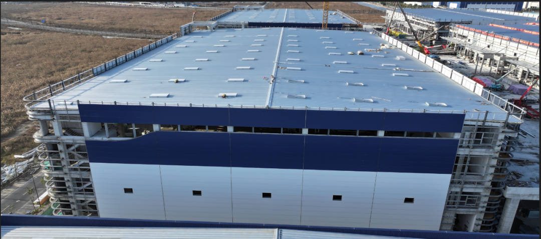 濟寧一建鋼結(jié)構(gòu)工程有限公司承建的金屬屋面及維護工程,涉及1#-4#物流倉庫、高架立體庫。倉庫跨度80米,屋面標(biāo)高34.1米,為雙向找坡結(jié)構(gòu)。該項目建設(shè)規(guī)模大、工期緊、技術(shù)精度要求高、工況復(fù)雜,自項目開始施工。公司對現(xiàn)場管理嚴(yán)格要求,積極配合業(yè)主及總包的整體調(diào)配,施工嚴(yán)格執(zhí)行施工方案,遵循規(guī)范標(biāo)準(zhǔn),合理安排人、機、料等,戮力同心將馬士基臨港旗艦倉項目打造成精 品工程、優(yōu) 質(zhì)工程。
